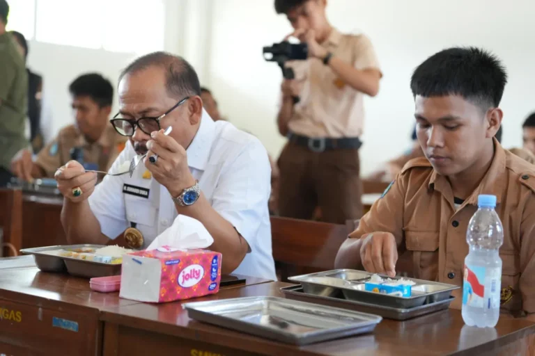 Pada kesempatan tersebut, Gubernur bahkan mencicipi langsung makanan MBG untuk memastikan kualitas dan kebersihannya bersama para siswa.