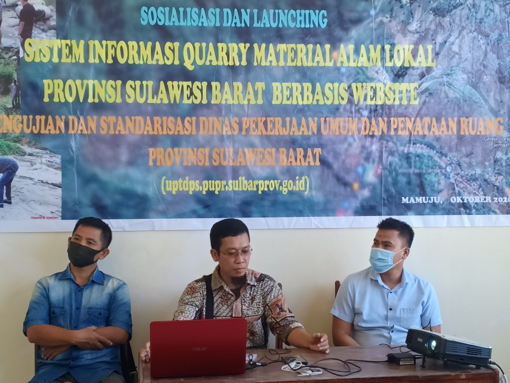 ” Kami membuat program publikasi Sistim Informasi Quarry Material ini diperuntukkan bagi pengguna anggaran , PPK/KPA , Konsultan Perencana dan kontraktor dalam membuat HPS /RAB terutama dalam menghitung analisa harga satuan pekerjaan,” terang Kasi Standarisasi Mutu UPTD Pengujian Dan Standarisasi Dinas PU dan Tata Ruang Provinsi Sulbar, Anas L,ST.MAP., saat Launching Publikasi Sistim Informasi Quarry Material Provinsi Sulbar, Jum’at (9/10/2020) di kantor UPTD Pengujian dan Standarisasi.