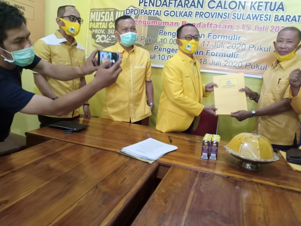 BANNIQ.Id.Sulbar. Kandidat yang disebut sebagai Calon terkuat Ketua Golkar Sulbar, pada Musda DPD I Partai Golkar Sulbar H.Aras Tammauni, Hari ini, Sabtu (18/7/2020) secara esmi mengembalikan formulir pendaftaran sebagai Calon ketua Golkar.