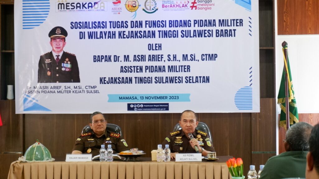 Aspidmil merespon sambutan selamat datang Kajari Mamasa, dan dalam sosialisasinya Kol. Laut (H) Dr. M. Asri Arief, S.H., M.Si., CTMP, menjelaskan bahwa telah dibentuknya struktur baru Bidang Pidana Militer di lingkungan Kejaksaan Agung RI yang mempunyai tugas dan wewenang di bidang penindakan, penuntutan dan upaya hukum