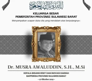 BANNIQ.Id. Mamuju. Musra Awaluddin Kabid Riset dan Inovasi daerah Bapperida Sulbar dan Sebelumnya juga sebagai Kepala Bagian Persidangan Sekertariat DPRD Sulbar yang wafat pada hari