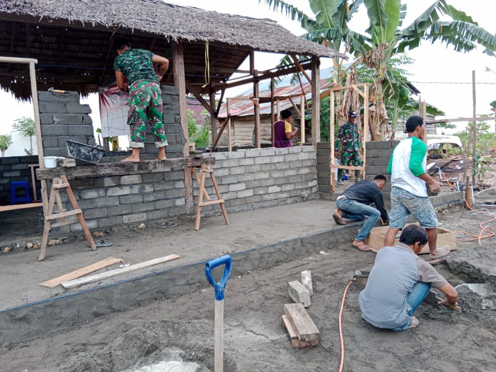 BANNIQ.Id, Pasangkayu— Personel Komando rayon militer (Koramil) 1427-01/Pasangkayu melaksanakan kegiatan pekerjaan rehab Rumah Tidak Layak Huni (RTLH) yang dimiliki oleh warga Saharuddin Ponto (66) di Lingkungan Tanjung Harapan, Kelurahan Pasangkayu, Kecamatan Pasangkayu, Kabupaten Pasangkayu, Rabu (14/06).
