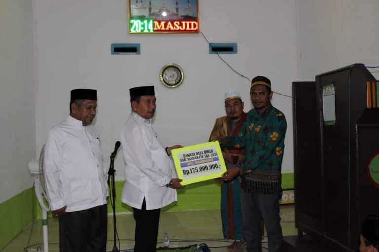 Sebelum sambutan Bupati pasangkayu H Yaumil Ambo Djiwa menyerahkan bantuan dana hibah sebesar Rp 175 juta dipertuntukan bagi seluruh masjid di kecamatan Bambaira