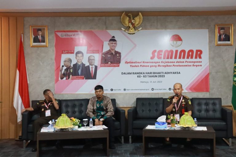 BANNIQ.Id. Mamuju – Kejati Sulbar menggelar seminar soal optimalisasi kewenangan jaksa dalam penanganan tindak pidana yang merugikan perekonomian negara.