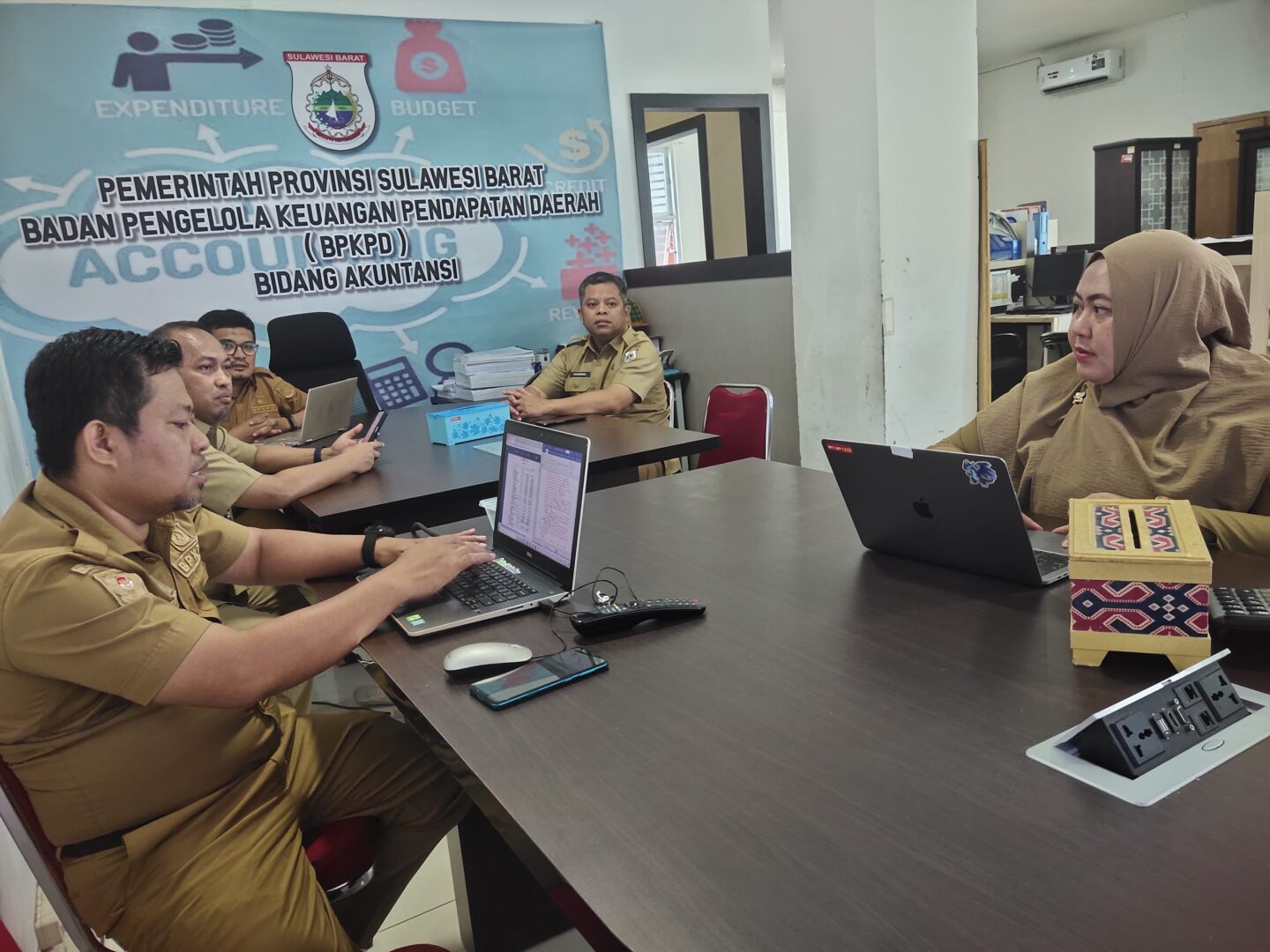 Tim evaluasi dipimpin oleh Kepala Bidang Akuntansi dan Pelaporan Keuangan Daerah, Muhammad, yang didampingi oleh Sekretaris BPKPD Sulbar, Fahri Yusuf, serta Kasubid Akuntansi dan Tuntutan Ganti Rugi, Indah Mustika Sari, JF AKPD, Gaffar dan staf lainnya.