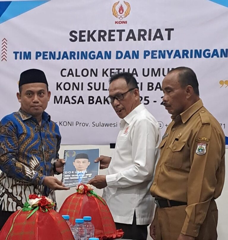 BANNIQ.Id. Mamuju. Ditemani puluhan anggota TIM LO, Kerabat dan Sahabat, Hari ini Selasa 29 Jui 2025 Calon Ketua Umum (Caketum ) KONI Sulbar Syamsul Samad resmi mengembalikan Formulir pendaftaran di Tim Penjaringan dan Penyaringan (TPP) KONI Sulbar di Sekertaria KONI Sulbar Jalan Abd.Malik atana Endeng Mamuju Sulbar. Nampak hadir mendampigi Syamsul Samad, Mukmin yang juga ketua KPID Sulbar, Mukmin dan Syamsul Samaf merupakan kerabat yang sama-sama putra Pambusang Balanipa.
