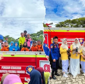 Belajar Tanggap Darurat Sejak Dini, RA Islam Al-Kafaa Gandeng Damkar Polman Gelar Simulasi Pemadam Kebakaran