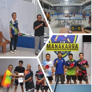 BANNIQ.Id. Mamuju. Membuktikan komitmen untuk menyelenggarakan pertandingan persahabatan Tenis Meja antar KLub Se Sulbar usai menempati gedung baru, PTM Manakarra berhasil menggelar turnamen persahabatan tenis