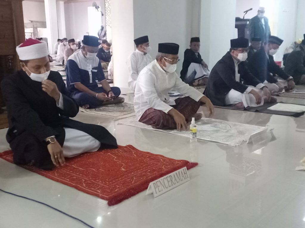 Melalui pesan Hari Raya Idul Fitri 1442 H, Gubernur H.Alibaal Masdar berterima kasih kepada seluruh jamaah atas kesediaan mengikuti Prokes oleh panitia Hari Raya Idul Fitri 1442 H, Masjid Baitul Anwar.