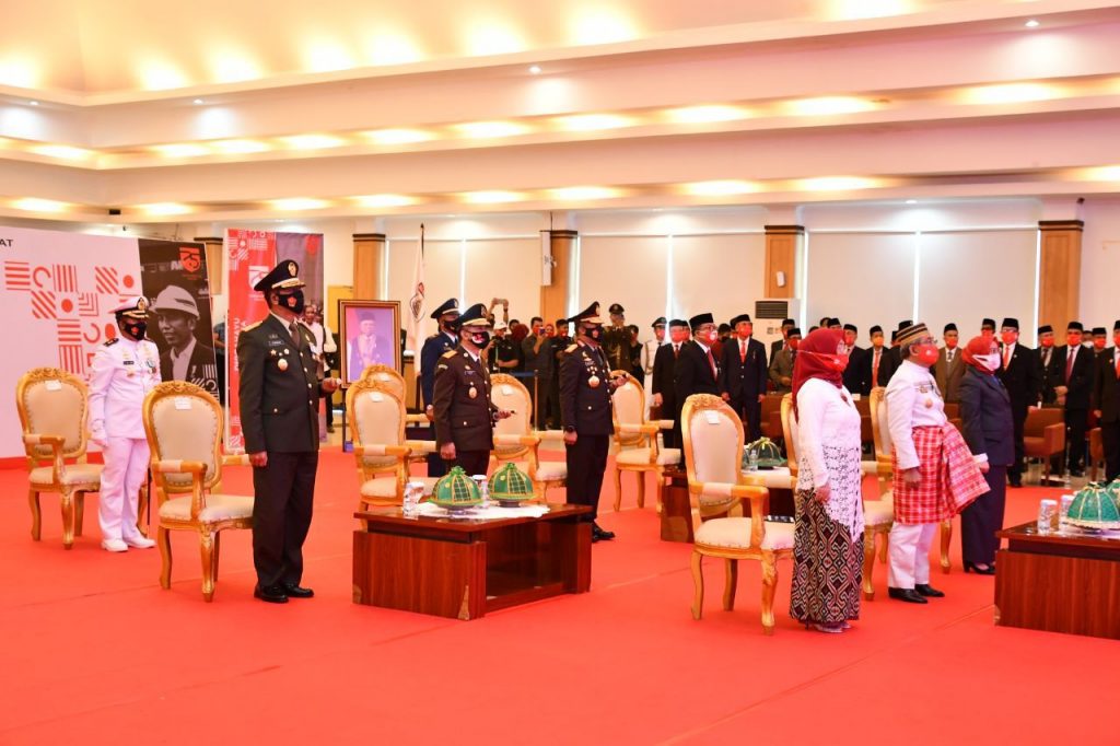 BANNIQ.Id.Mamuju. Mengingat Pandemi Covid 19 yang masih belum berakhir sampai saat ini, Upacara HUT RI ke 75 Tahun ini sebahagian besar diperingati secara Virtual, tidak terkecuali Upacara HUT RI ke 75 secara Virtual yang diikuti oleh Danrem 142/Tatag Brigjen TNI Firman Dahlan, S.I.P dilantai 4 kantor Gubernur Sulawesi Barat. Senin ( 17/08/2020)