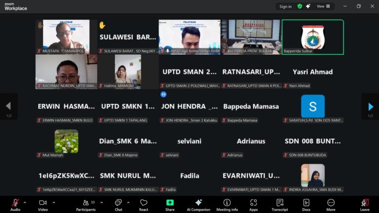 BANNIQ.Id. Mamuju. Pemerintah Provinsi Sulawesi Barat melalui Bapperida menggelar kegiatan Peningkatan Sumber Daya Manusia dalam Penyelenggaraan Sekolah Inklusi bertempat di Ruang Rapat RPJMD dan media virtual Zoom, Senin 1 September 2025.