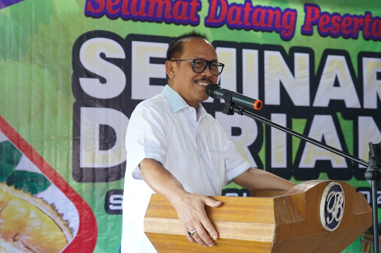 “Durian-durian mana yang berkualitas, kami siap menyediakan untuk ditanam oleh petani-petani milenial, petani-petani modern,” ujar Suhardi Duka.