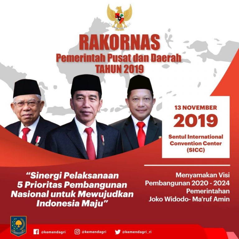 Ditambahkan Zul, Rakornas tersebut akan dibuka langsung oleh Presiden Joko Widodo bersama Wapres KH.Ma’ruf Amin. Dilanjutkan dgn arahan terkait Visi-Misi Presiden dan Wapres serta arah kebijakan dan program prioritas kabinet Indonesia Maju periode 2019-2024|asdar