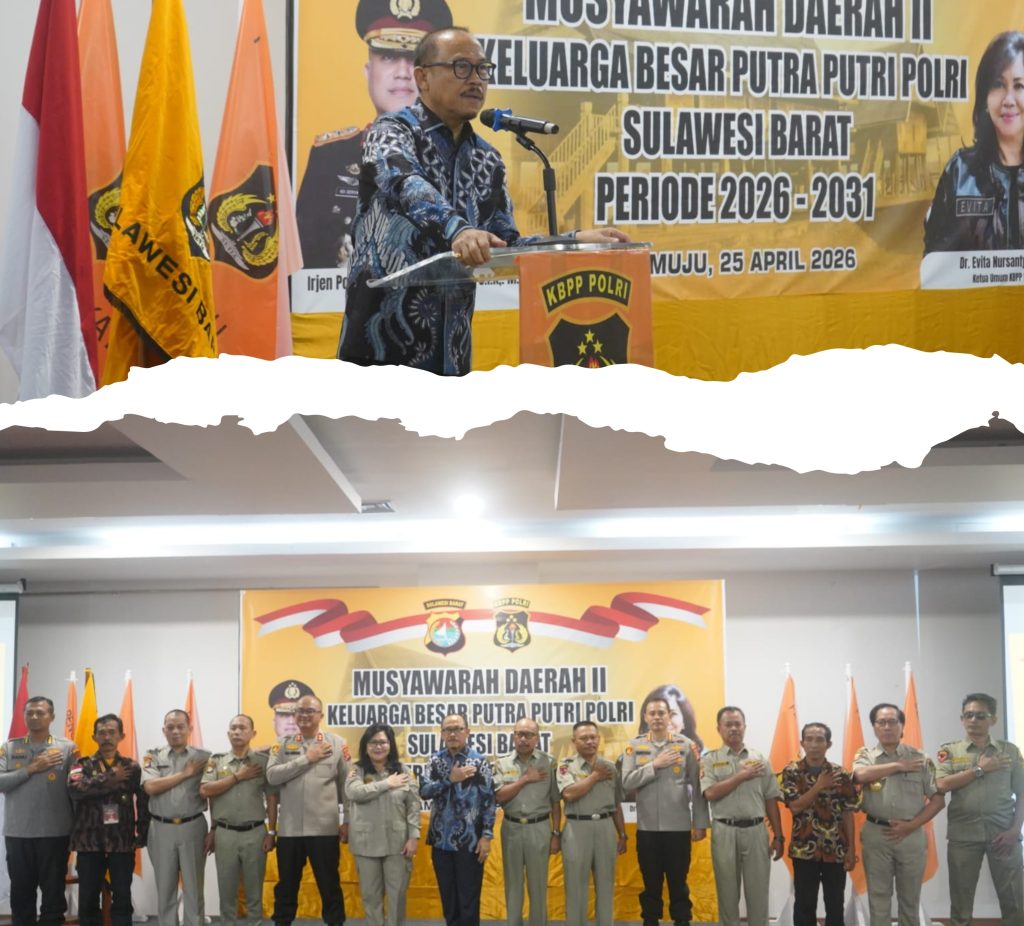 BANNIQ.Id. Mamuju. – Gubernur Sulawesi Barat Suhardi Duka menghadiri musyawarah daerah II Keluarga Besar Putra Putri Polri (KBPP Polri) di Hotel Maleo, Sabtu 25 April 2026.