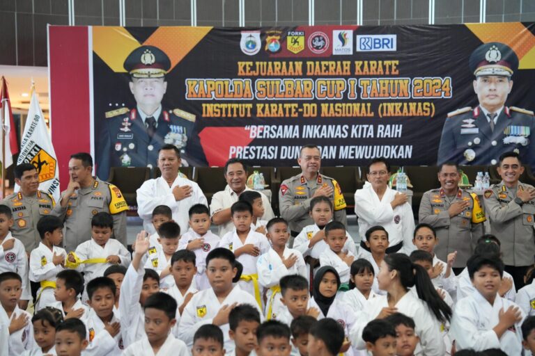 BANNIQ.Id.Mamuju.- Pj Gubernur Sulawesi Barat Bahtiar Baharuddin hadiri pembukaan kejuaraan daerah (Kejurda) Institut Karate-Do Nasional (INKANAS) Kapolda Sulbar Cup 1 tahun 2024 di Matos, Kamis 24 Oktober 2024.
