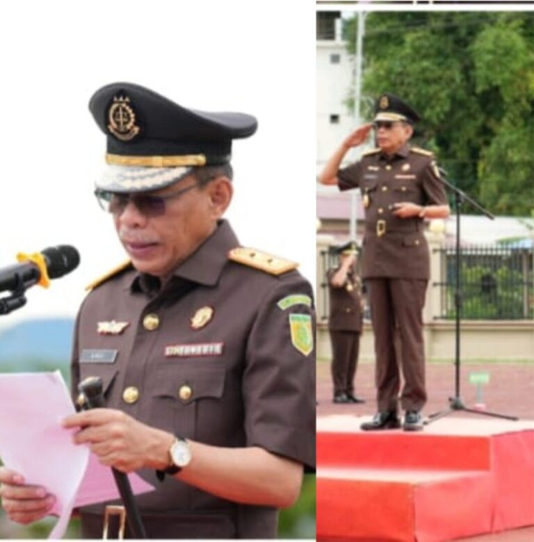 BANNIQ.Id.Sulbar.Kepala Kejaksaan Tinggi (Kejati) Sulbar,Dr.H.A.Darmawangsa,SH;MH menjadi Inspektur Upacara (Irup) Peringatan Hari lahir (Harlah) Pamcasila di halaman Kantor Kejati Sulbar, Senin 2 Juni.