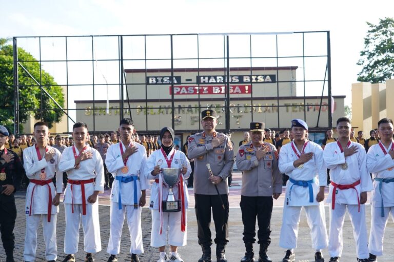 Selanjutnya secara simbolis Kapolda menyerahkan piala juara umum kepada tim karate, “Selamat ya teruslah berprestasi, karena ke depan akan ada berbagai event dalam menyambut tanggal 1 Juli,” tambahnya.