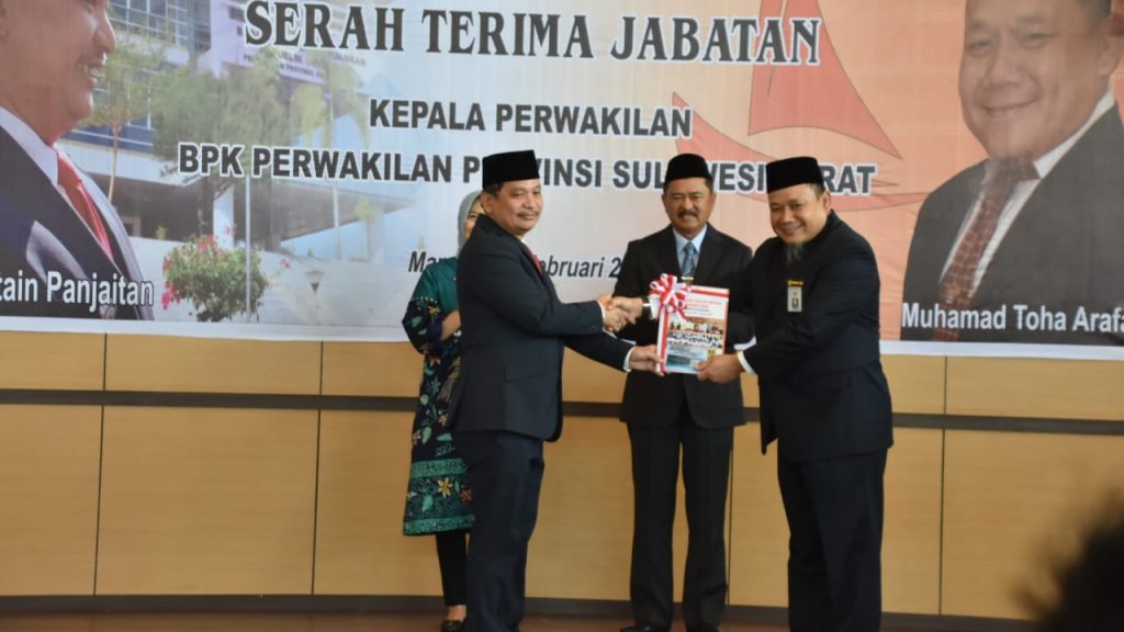 BANNIQ.Id.Sulbar.-Jabatan Kepala Perwakilan (Kalan) BPK Sulbar berganti dari Pejabat Lama Eydu Oktain Panjaitan, ke Mohammad Toha Arafat.Sertijab Kalan Kalan BPK Sulbar berlangsung hari ini Selasa (11/2/2020) di Aulat Kantor BPK Sulbar yang dihadiri Wakil Gubernur Sulbar Enny Anggraeni Anwar, bersama Sekprov Sulbar Muhammad Idris, para Bupati dan ketia DPRD Se Wilayah Provinsi Sulbar.