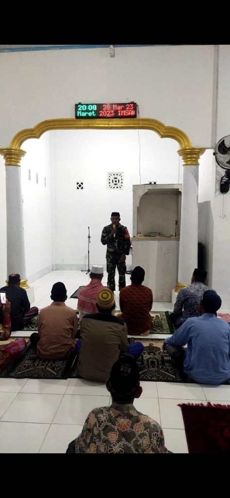 BANNIQ.Id, Pasangkayu — Babinsa Koramil 1427-02/Bambalamotu menghadiri acara safari ramadhan yang bertempat di Masjid Al Ikhlas, Dusun Kaluku Nangka 1, Desa Kaluku Nangka, Kecamatan Bambaira, Kabupaten Pasangkayu, Provinsi Sulawesi Barat, Selasa (28/03).