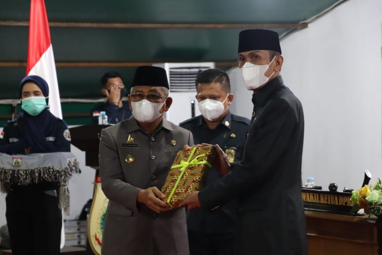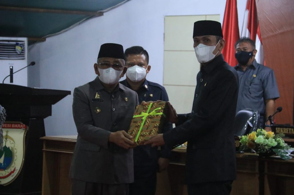 BANNIQ.Id.Sulbar. Gubernur Sulbar Ali Baal Masdar menyerahkan Laporan Keterangan Pertanggungjawaban (LKPJ) Gubernur Tahun Anggaran 2020 Kepada Wakil Ketua I DPRD Sulbar Usman Suhuria, disaksikan Wakil Ketua II DPRD Sulbar Abdul Halim, Selasa 6 April 2021.
