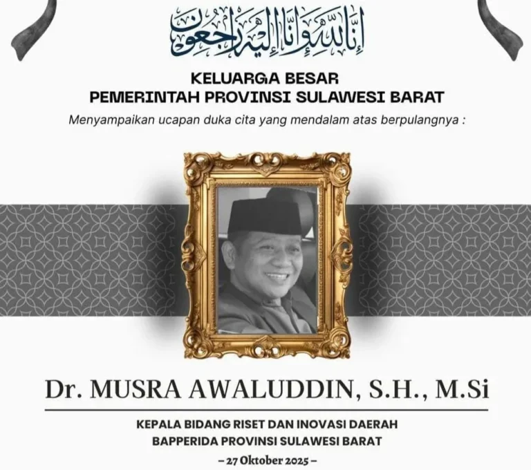 ” Kepergian Musra Awaludin, kami nyatakan duka yang mendalam kami cukup kaget dan merasa kehilangan seperti adik sendiri, Kita ditinggal kader birokrasi yang potensial, kader muda birokrasi sulbar yang berpengetahuan dan mampu menjaga integritas dalam bekerja.,” tulis mantan Sekprov Sulbar Dr.Muh.Idris DP melalui pesan Watshaap, selasa ( 28/10/25).