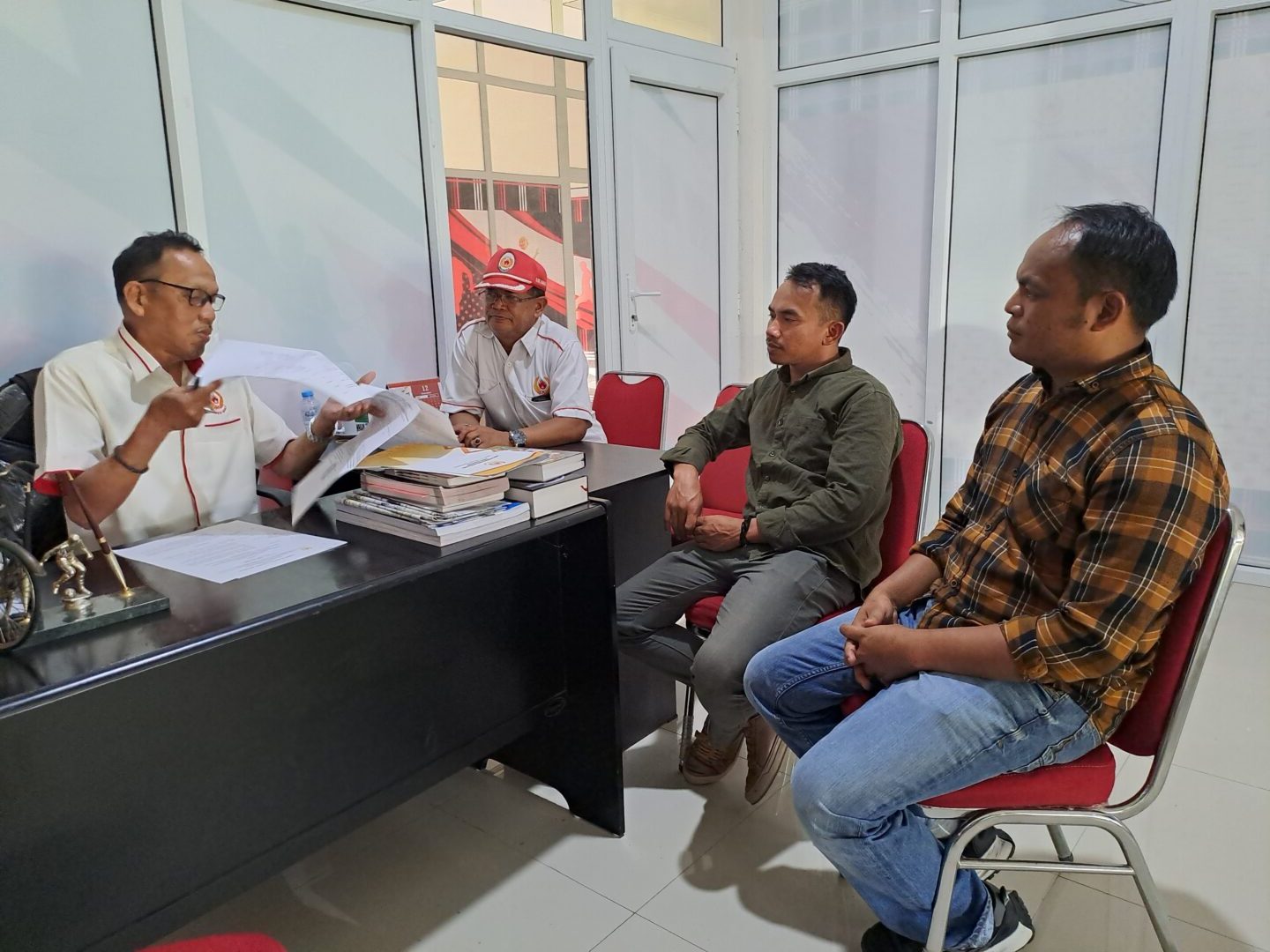 Sekum KONI Sulbar,H.Samiran saat berdiskusi dengan Pengurus KONI Mamasa di Kantor KONI Sulbar(foto:Banniq.Id)