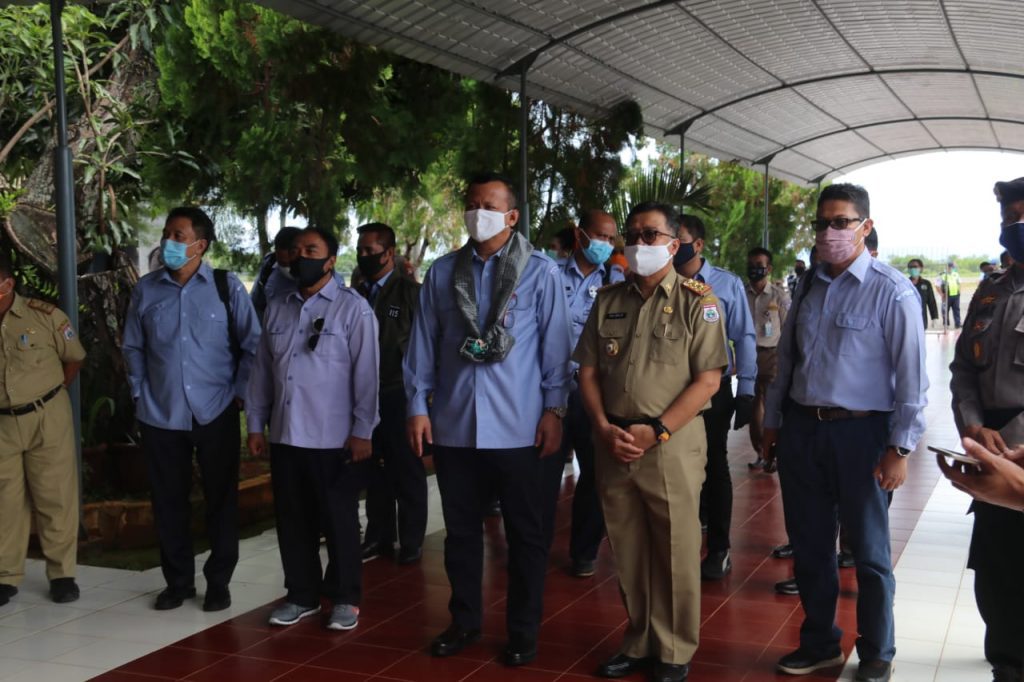 BANNIQ.Id.Sulbar — Menteri Kelautan dan Perikanan, Edhy Prabowo, melakukan kunjungan kerja di Sulawesi Barat, Senin, 8 Juni, 2020. Setiba di Bandara Tampa Padang Mamuju, Edhy Prabowo mengikuti presentasi potensi pulau Balabalakang yang dilakukan oleh Sekprov Sulbar di room VIP Bandara Tampa Padang.