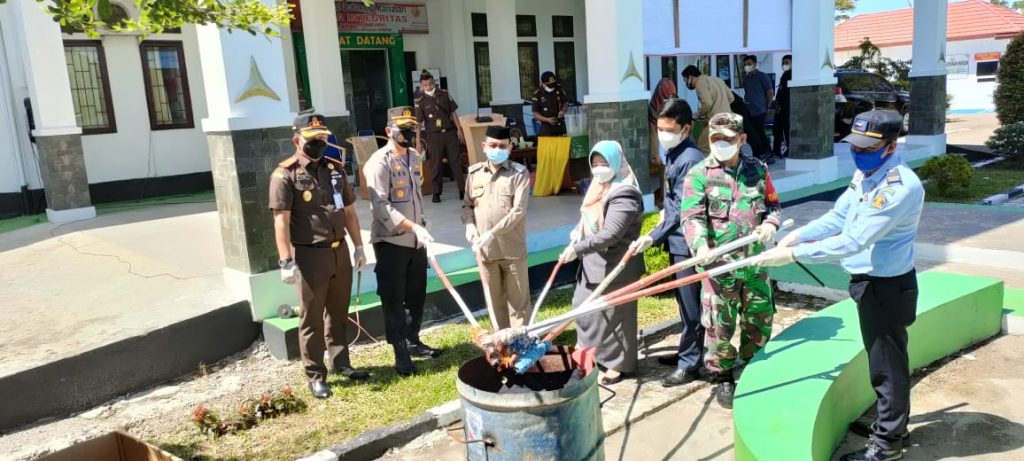 BANNIQ.Id.Pasangkayu, — Sebagai salah satu rangkaian HUT Hari Bhakti Adhyaksa (HBA) ke-61 Thn dan HUT Ikatan Adhyaksa Dharma Karini (IAD) ke-21 Thn, Kejaksaan Negeri (Kejari) Kabupaten Pasangkayu, Provinsi Sulbar melakukan pemusnahan Barang Bukti (BB) Tindak Pidana Umum(Tipidum) yang terjadi sejak Bulan September 2020 hingga Bulan Juni 2021 yang ada di Kab Pasangkayu dan sudah Inkrah atau memiliki ketetapan Hukum tetap, Senin (19/07-2021).