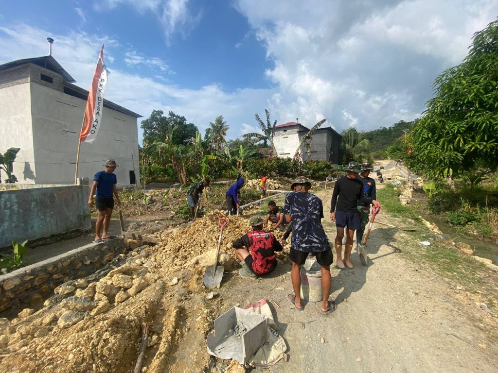 BANNIQ.id, Pasangkayu– Pengerjaan saluran drainase di Dusun Morobio, Desa Ako, Kecamatan Pasangkayu, Kabupaten Pasangkayu, terus dikebut oleh Satgas TMMD 118.