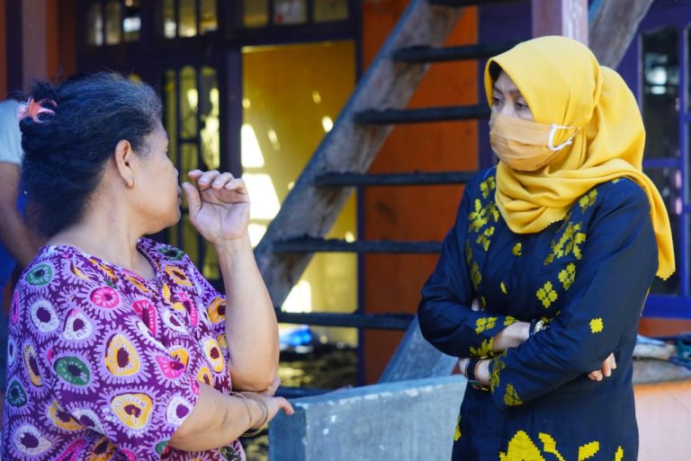 Patmawati Fahmi saat mengunjungi korban kebakaran di Teppo(photo:repro)