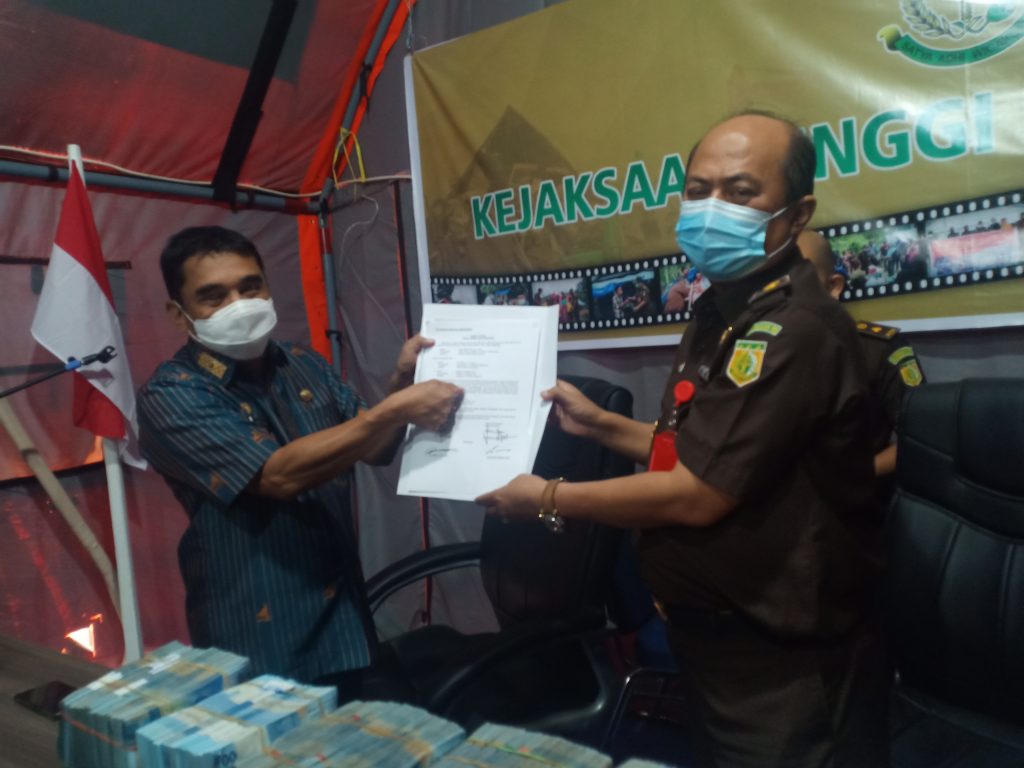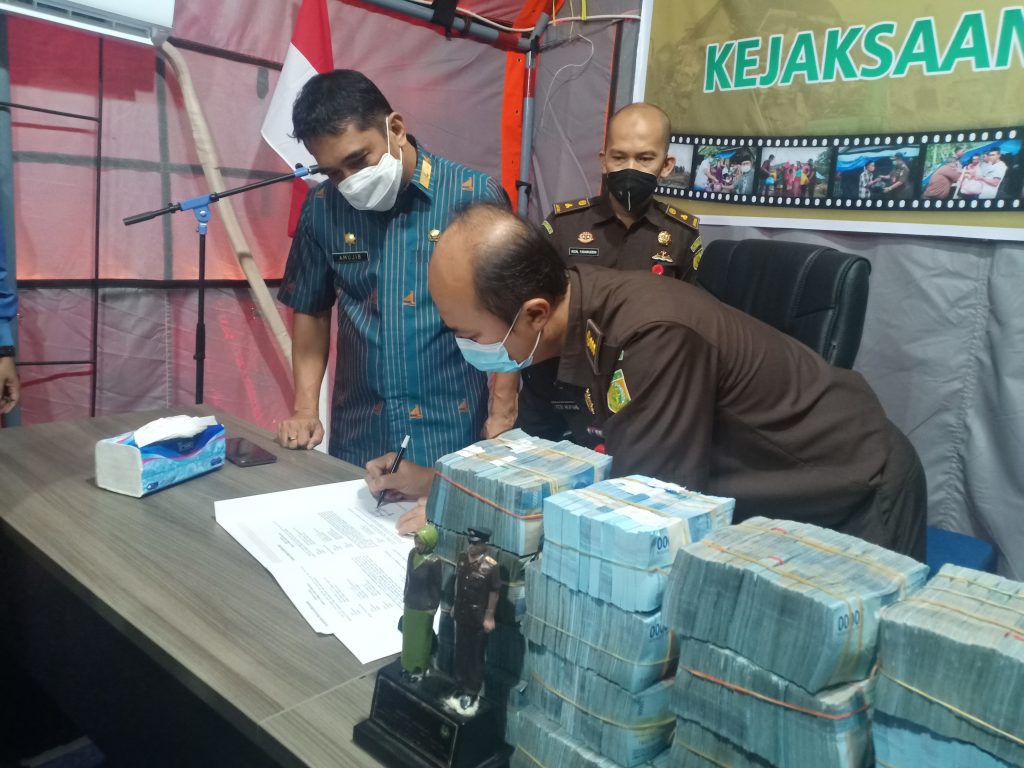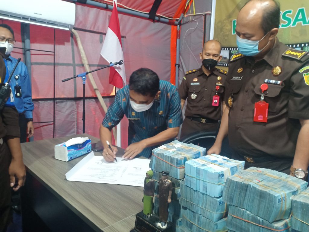 Pengembalian uang titipan tersebut berlangsung di bawah tenda depan Kantor Kejati Sulbar, Kamis (6/5/2021) dihadiri Kajati yang diwakili Aspidsus Kejati Sulbar,Fery Mupahir,SH, Kaban Badan Pengelola Keuangan dan Pendapatan Daerah (BPKPD) Pemprov Sulbar, Drs.Amujib dan Inpektorat Pemprov Sulbar yang diwakili oleh Gustam Kamase, hadir Pula Kasi penyidikan Dr.Rizal,F dan Kasi Penkum Kejati Sulbar,Amiruddin,SH.