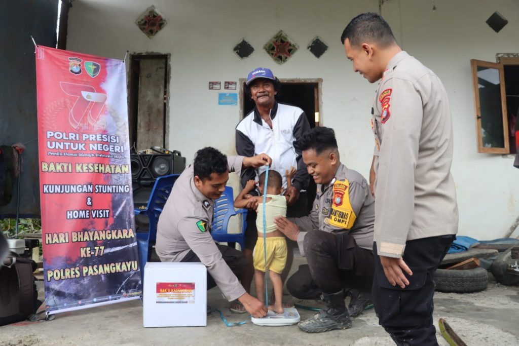 Sebagai bentuk kepedulian dan perhatian serta dukungan dalam penanganan terhadap masalah stunting, Polres Pasangkayu memberikan bantuan berupa vitamin dan makanan bernutrisi kepada anak yang terindikasi mengalami stunting di desa Ompi Kecamatan Bulutaba, Kabupaten Pasangkayu, Selasa (20/06).