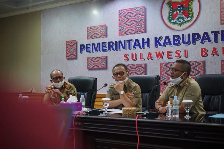 Bupati Mamuju,H.Habsi Wahid,Wakil Bupati H.Irwan Satyaputra Pababari dan Sekkab Mamuju,H.Suaib Kamba,saat menggelar Silaturrahim via Siarang langsung di Facebook(photo:Lis)
