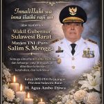 “Duka yang mendalam bagi kita semua masyarakat Sulawesi Barat atas berpulangnya ke Rahmatullah Pak Jenderal Salim S Mengga. Semoga amal ibadah almarhum diterima oleh Allah SWT, dan kepada keluarga yang ditinggalkan diberikan kesabaran serta ketabahan dalam menghadapi cobaan ini,” ujar Jupri Mahmud.