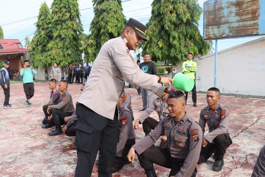 BANNIQ.Id, Pasangkayu— Puluhan Bintara remaja yang dimutasi ke satuan kerja Polres Pasangkayu mengikuti pelaksanaan tradisi penyambutan, Sabtu (10/06).