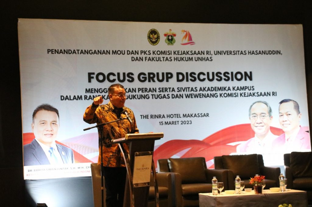 Dalam pemaparan selanjutnya, Wakil Kepala Kejaksaan Tinggi Sulawesi Selatan, Hermanto, S.H., M.H, menyampaikan Focus Group Discussion Komisi Kejaksaan RI merupakan ruang bertemunya para Sivitas Akademika yang baik dilakukan. Banyak masalah yang menjadi tantangan kejaksaan dan penyamaan persepsi dapat menjadi kunci.