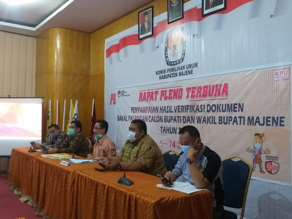 Rapat pleno tersebut berisi pembacaan Hasil tes kesehatan keempat Balon Bupati dan Balon Wakil Bupati untuk Pilkada Majene, yang tertuang melalui berita acara hasil pemeriksaan kesehatan Nomor YR.01.01/XVIII.1/14285/2020. Tentang hasil pemeriksaan calon dalam pemilihan Bupati dan Wakil Bupati.