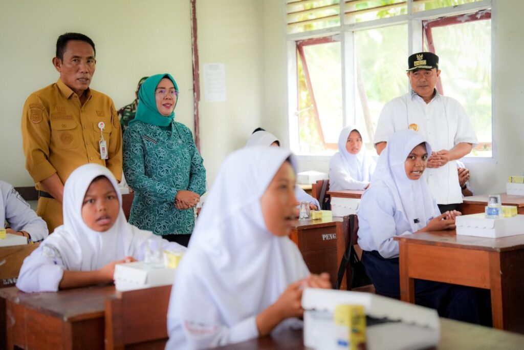 BANNIQ.Id. Pasangkayu — Penjabat Gubernur Provinsi Sulbar, Bahtiar Baharuddin bersama PJ Ketua Tim Penggerak PKK Sulbar Sofha Marwah Bahtiar, Pemkab Pasangkayu serta Forkopimda melakukan uji coba makan bergizi gratis di MTS Ako Kabupaten Pasangkayu, Senin 11 November 2024.