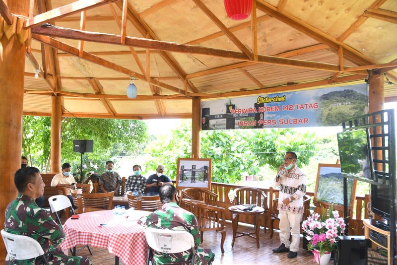 BANNIQ.Id.Mamuju. Bertempat di Baruga belakang rumah Jabatan Danrem 142 /Tatag , Danrem bersama Perwira Korem gelar pertemuan silaturahim dengan Insan Pers, Selasa (22/6/2021) yang dipandu langsung Danrem 142 /Tatag Brigjen TNI Firman Dahlan, S.I.P.Sejumlah awak media dan pengurus organisasi kewartawanan di Mamuju hadir dalam kegiatan silaturahim ini.