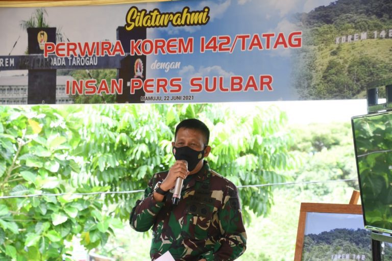 BANNIQ.Id.Mamuju. Bertempat di Baruga belakang rumah Jabatan Danrem 142 /Tatag , Danrem bersama Perwira Korem gelar pertemuan silaturahim dengan Insan Pers, Selasa (22/6/2021) yang dipandu langsung Danrem 142 /Tatag Brigjen TNI Firman Dahlan, S.I.P.Sejumlah awak media dan pengurus organisasi kewartawanan di Mamuju hadir dalam kegiatan silaturahim ini.