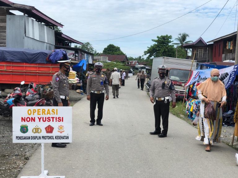 BANNIQ.Id.Pasangkayu. Upaya untuk Memutus mata rantai Covid 19 Pemkab Pasangkayu telah menerbitkan Perbup Penanggulangan Covid 19. Untuk Menegakkan Pegub tersebut – Polres Pasangkayu melaksanakan Operasi bersama dengan TNI dan Satpol PP Kabupaten Pasangkayu tentang penegakan Peraturan Bupati (Perbup) Pasangkayu dalam menanggulangi penyebaran Corona Virus Disease 19 (Covid-19) di Pasar Funju Desa Benggaulu Kecamatan Dapurang. Rabu Siang (4/11/2020).