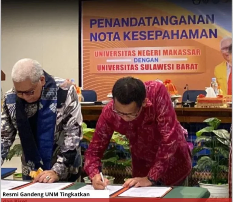 BANNIQ.Id. Majene, Universitas Sulawesi Barat (Unsulbar) resmi menandatangani Nota Kesepahaman (MoU) dengan Universitas Negeri Makassar (UNM) yang berlangsung di Hotel Villa Bogor, Majene Sabtu, 20 September 2025