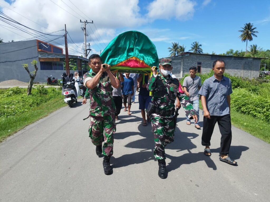 BANNIQ.Id, Pasangkayu — Komandan Komando Rayon Militer (Danramil) 1427-01/Pasangkayu Letda Inf Andi Malik beserta Babinsa Koramil Melayat di rumah duka Almarhumah Melda Hakim anak dari Purnawirawan (Purn) Serma Hakim.