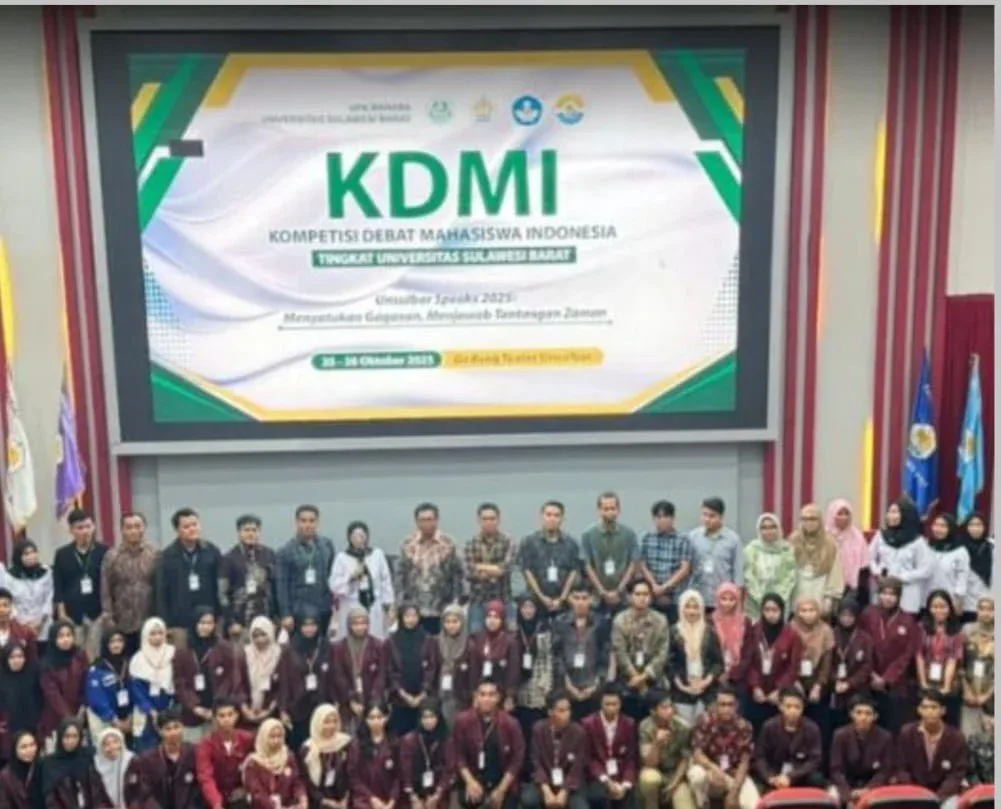 Sebanyak 32 Tim mahasiswa Perwakilan dari masing- masing Program studi (Prodi) ikuti Kompetisi Debat Mahasiswa Indonesia (KDMI) yang berlangsung selama dua hari, Sabtu- Minggu, 24 – 25 Oktober 2025 bertempat di Gedung Kembar Teater Kampus padzang-padzang Unsulbar