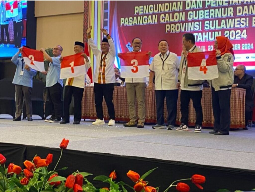 Setelah proses pengundian selesai, Ketua KPU Sulbar, Said Usaman, membacakan Surat Keputusan Penetapan Nomor Urut bagi keempat pasangan calon yang akan bersaing pada Pilgub Sulbar 2024.